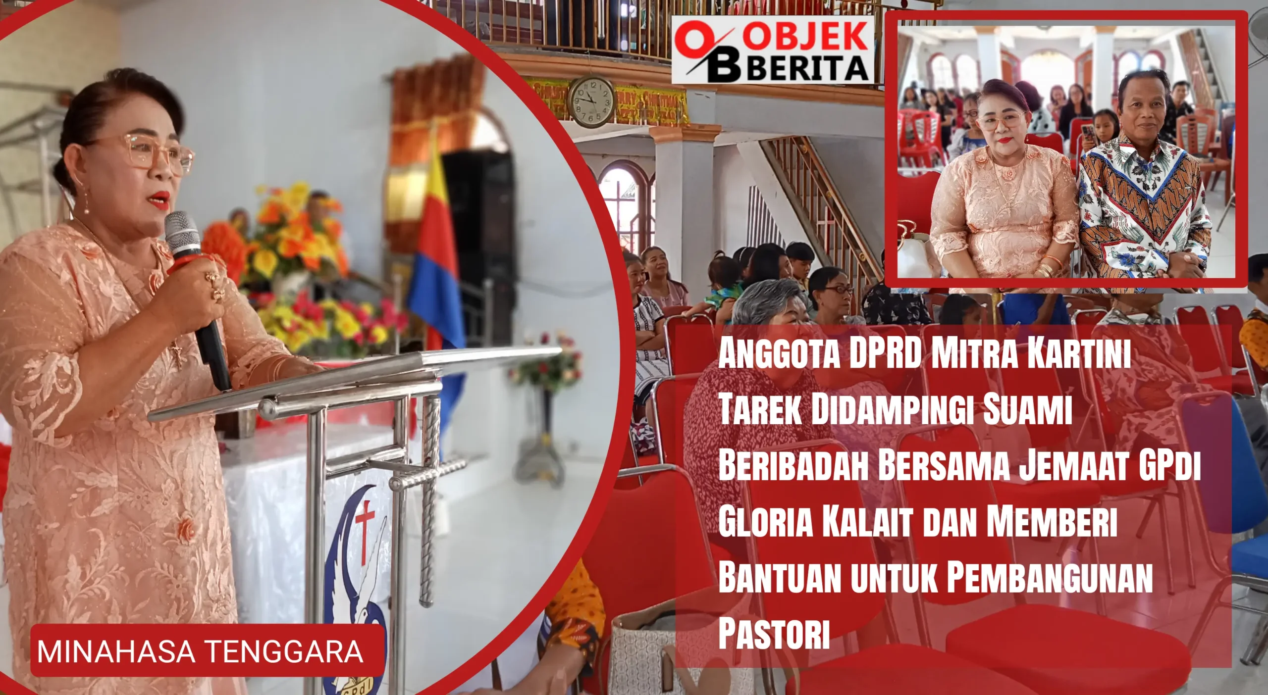 MITRA, ObjekBerita.id – Anggota DPRD Kabupaten Minahasa Tenggara, Kartini Tarek, didampingi suaminya Muryanto, beribadah bersama Jemaat GPdI Gloria Kalait pada Minggu, 14 September 2025.