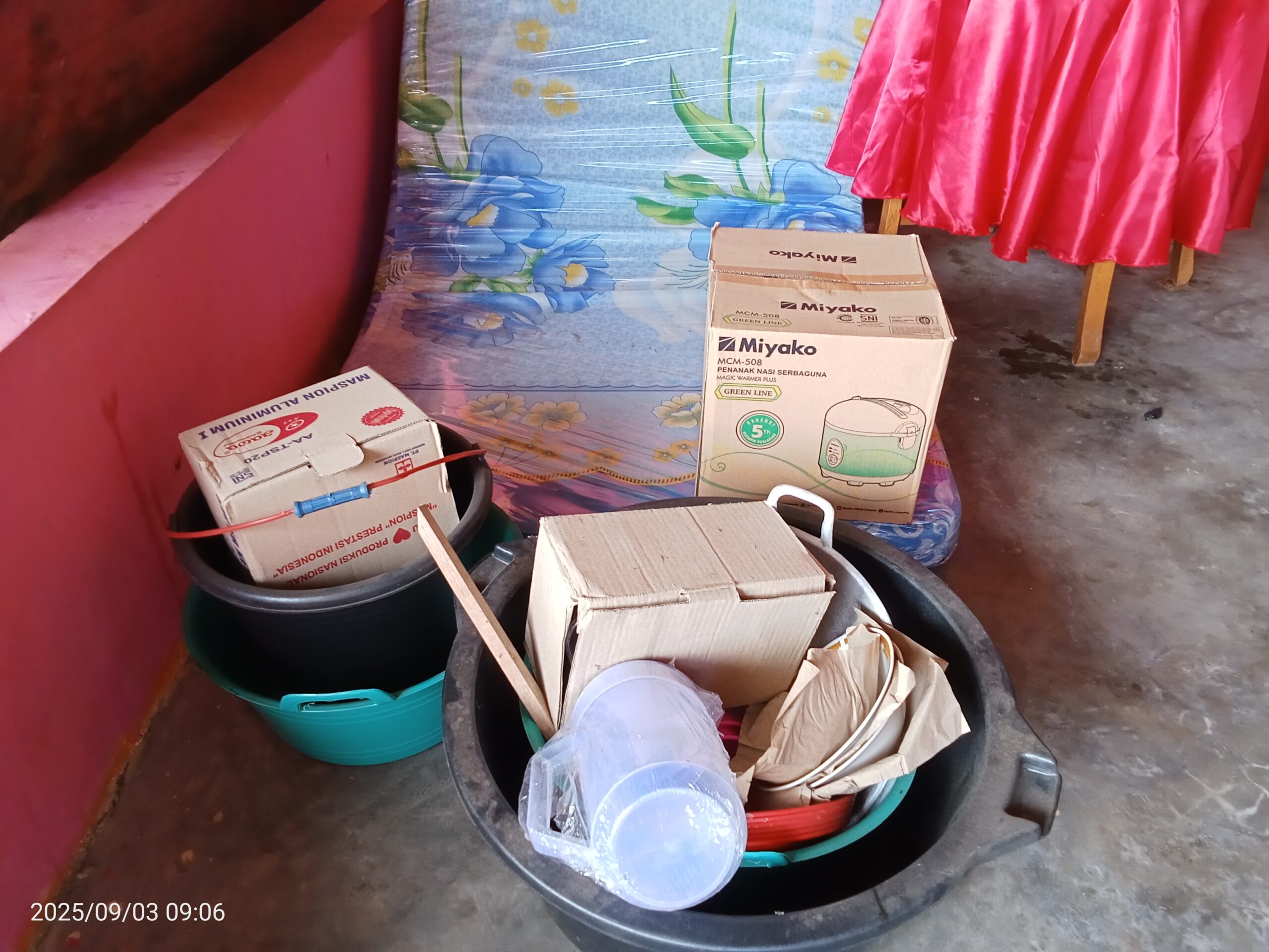 Bantuan yang diterima berupa peralatan masak dan fasilitas lainnya, seperti Magic, untuk memasak nasi, piring, gelas, dan busa tempat tidur.