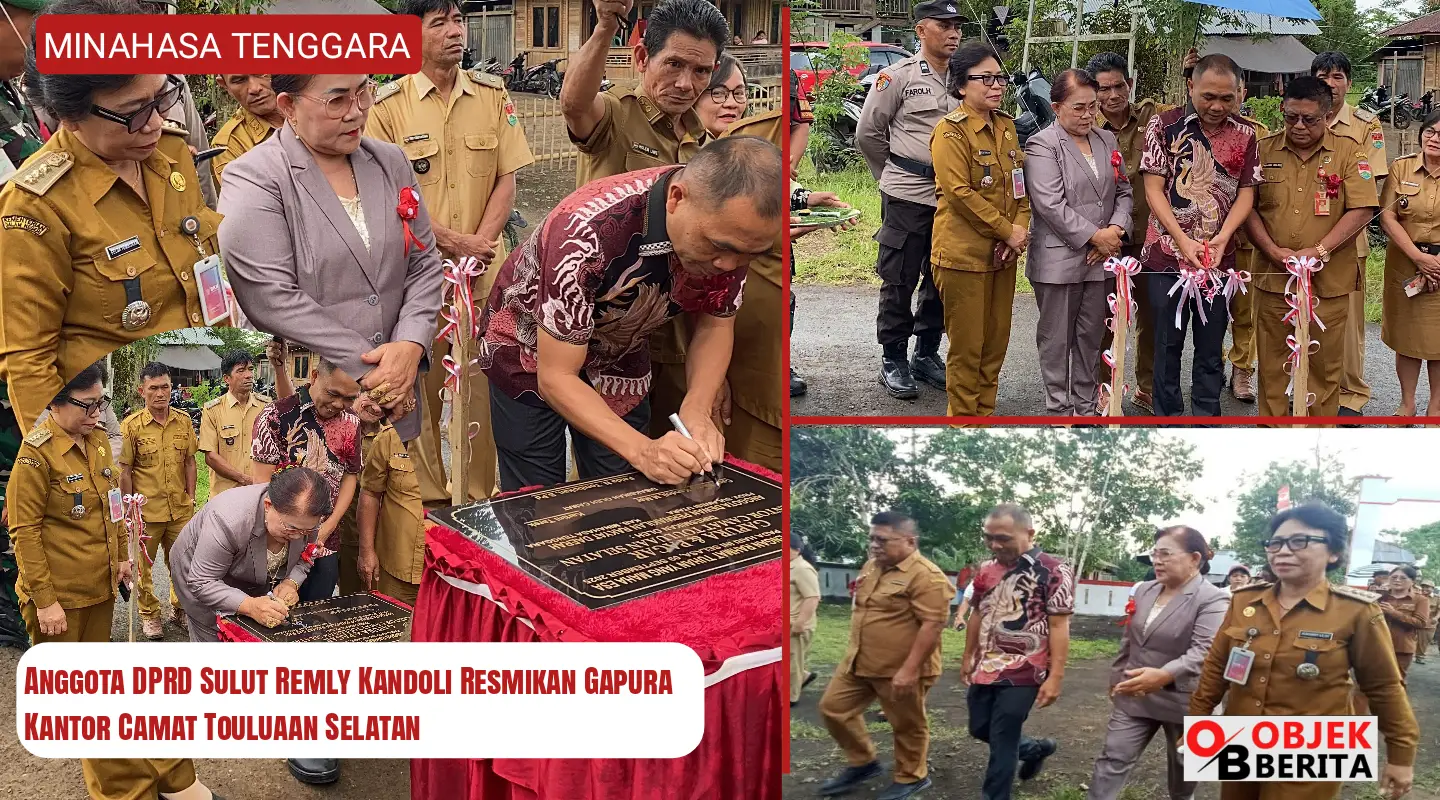 MITRA, ObjekBerita.id – Anggota Dewan Perwakilan Rakyat Daerah (DPRD) Provinsi Sulawesi Utara dari Partai PDIP Dapil Mitra Minsel, Capt. Remly Kandoli, M.Mar, meresmikan gapura Kantor Camat Touluaan Selatan Kabupaten Minahasa Tenggara pada Selasa, 9 September 2025.