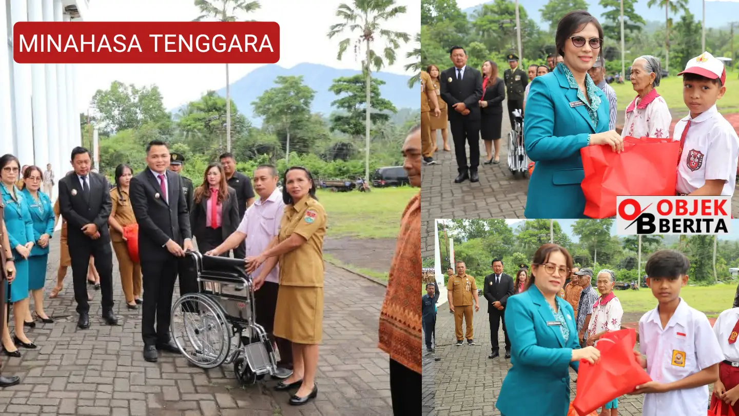 MITRA, ObjekBerita.id – Bupati Minahasa Tenggara (Mitra), Ronald Kandoli, dan Ketua TP PKK, Ny. Stefa Kandoli Antou, bersama Wakil Bupati Fredy Tuda dan Wakil Ketua TP PKK, Ny. Sandra Tuda Kindangen, S.Th, M.Pd, melalui dinas sosial menyerahkan bantuan sosial pada Upacara Peringatan Hari Pahlawan ke-80 di Kab. Mitra Senin, 10 Nov 2025.