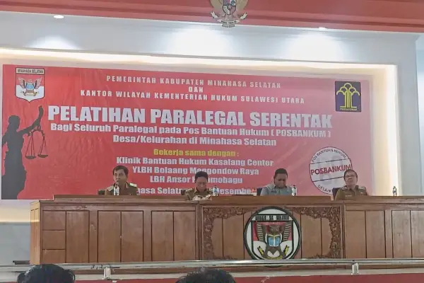 Bertempat di Aula Waleta Kantor Bupati Minsel, kegiatan yang berlangsung selama tiga hari secara hybrid ini bertujuan untuk meningkatkan kompetensi para paralegal sebagai garda terdepan dalam memberikan layanan hukum dasar, pendampingan awal, dan edukasi hukum bagi masyarakat di tingkat akar rumput.