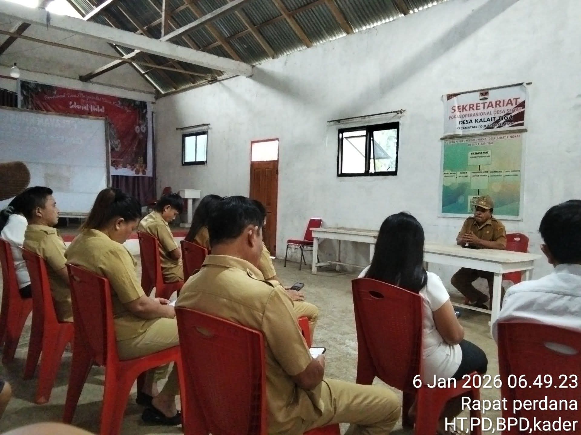 “Kami sangat senang dapat memulai tahun 2026 dengan apel dan rapat perdana ini. Kami ingin menekankan pentingnya koordinasi dan sinergi antara seluruh perangkat desa dan kader dalam menjalankan program-program pembangunan. Marilah kita bekerja sama untuk meningkatkan kualitas hidup masyarakat Desa Kalait Tiga. Kami berkomitmen untuk menjalankan program-program pembangunan yang telah direncanakan dan memastikan bahwa setiap rupiah yang digunakan dapat memberikan manfaat yang maksimal bagi masyarakat” tambah Tua Royke Tarek.