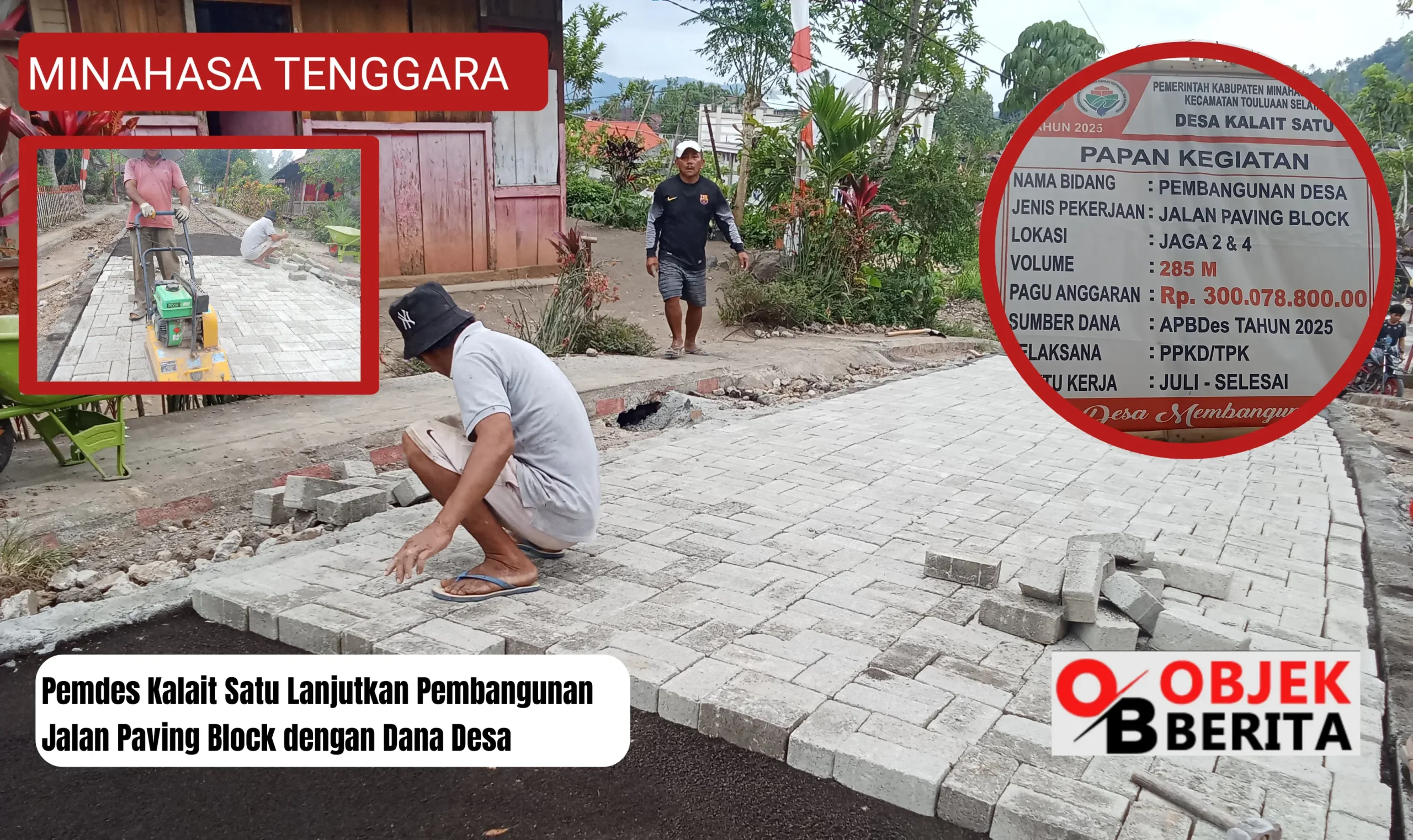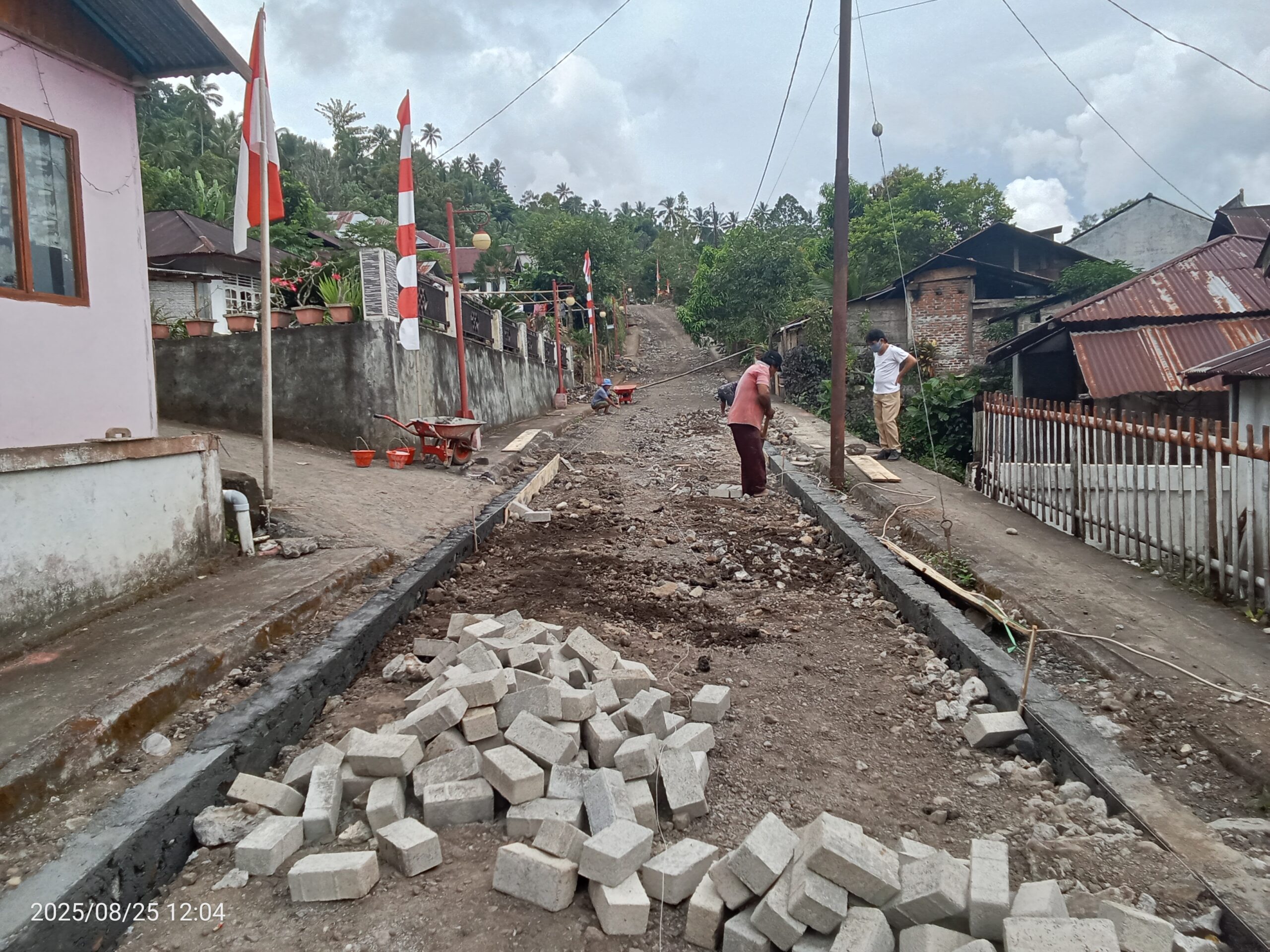MITRA, ObjekBerita.id – Pemerintah Desa Kalait Satu, Kecamatan Touluaan Selatan, Kabupaten Minahasa Tenggara, melanjutkan pekerjaan pemasangan paving block di Lorong Tanjung Batu, wilayah Jaga Dua dan Jaga Empat, pada Rabu, 3 September 2025.