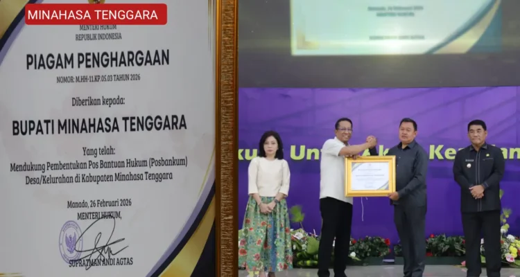 Diwakili Wabup FT, Bupati Ronald Kandoli Terima Penghargaan dari Menteri Hukum RI Daerah, Mitra|February 26, 2026by Jimmy Rumondor MITRA, ObjekBerita.id – Pemerintah Kabupaten Minahasa Tenggara (Mitra) menerima penghargaan bergengsi dari